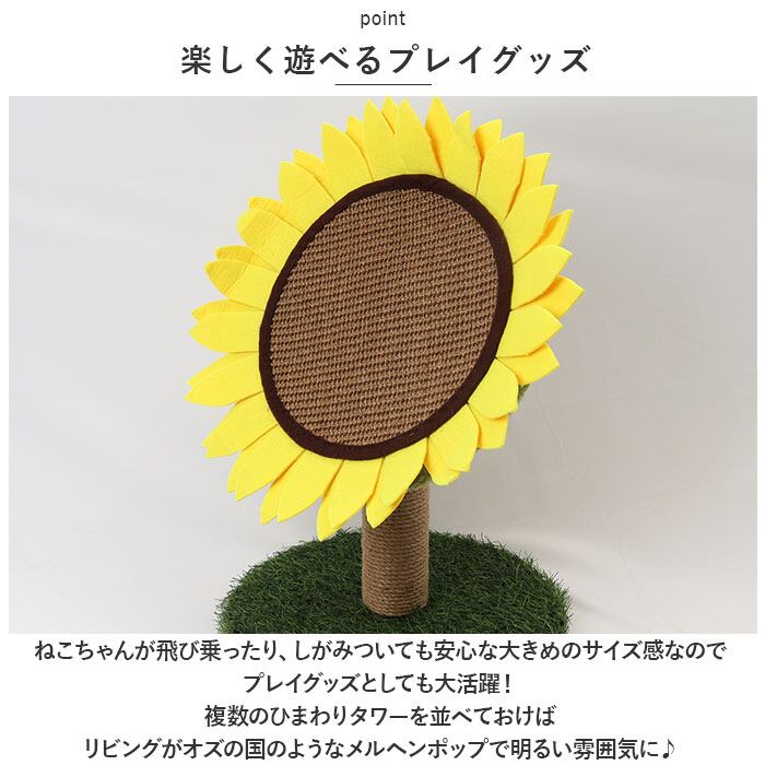 ・ねこちゃんが飛び乗ったり、しがみついても安心な大きめのサイズ感なので、プレイグッズとしても大活躍!複数のひまわりタワーを並べておけば、リビングがオズの国のようなメルヘンポップで明るい雰囲気に♪