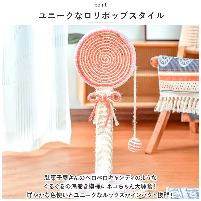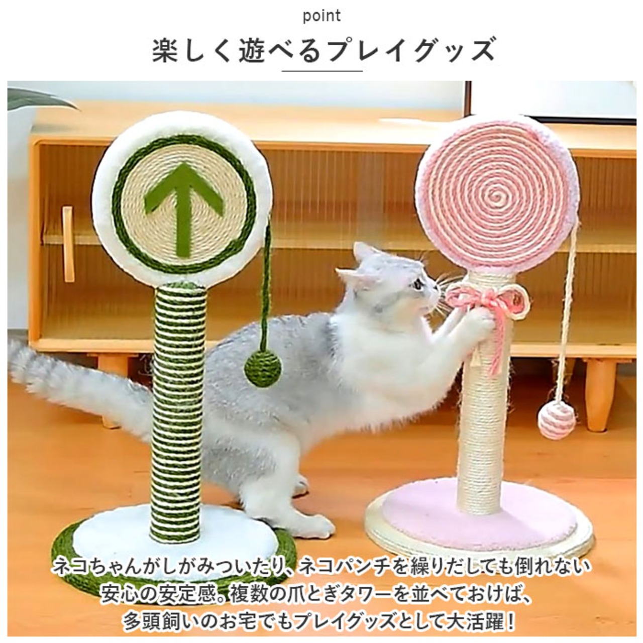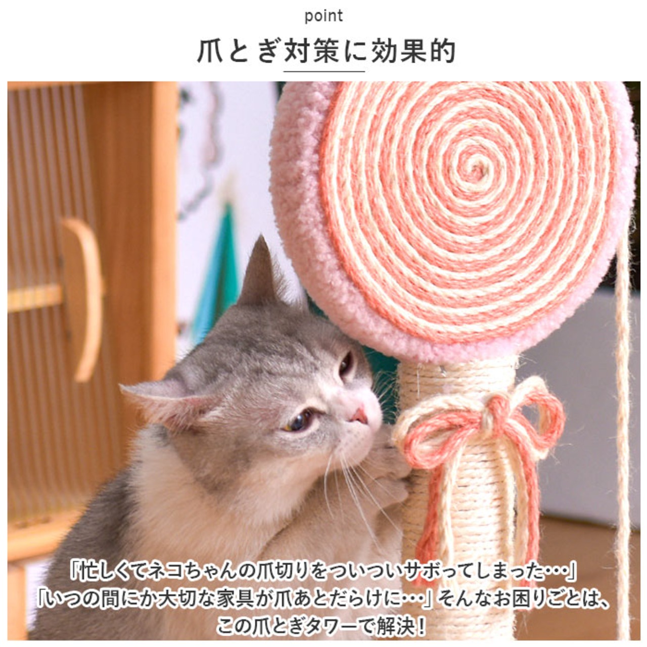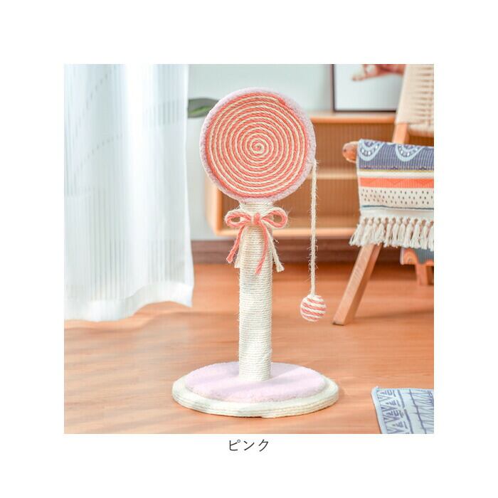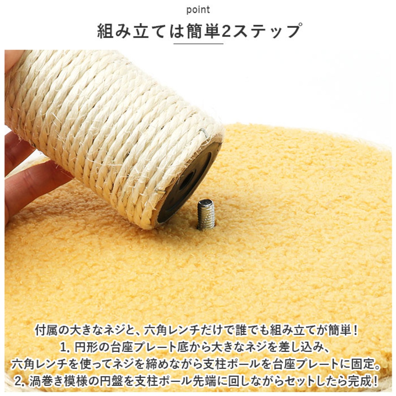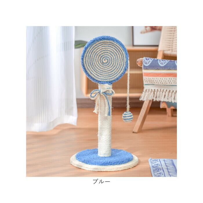 ・ぐるぐるの渦巻き部分や支柱部分には天然の麻縄を巻きつけてあり、爪のひっかかりがよく、ネコちゃんのストレス解消にぴったり。