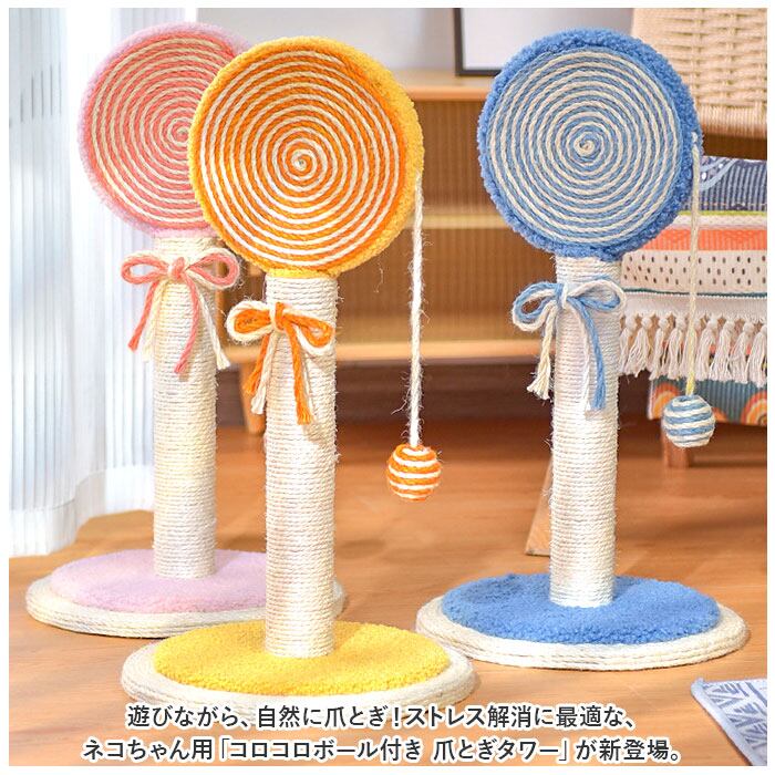 ・遊びながら、自然に爪とぎ!ストレス解消に最適な、ネコちゃん用「コロコロボール付き 爪とぎタワー」が新登場。