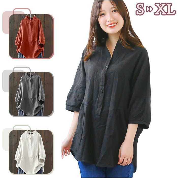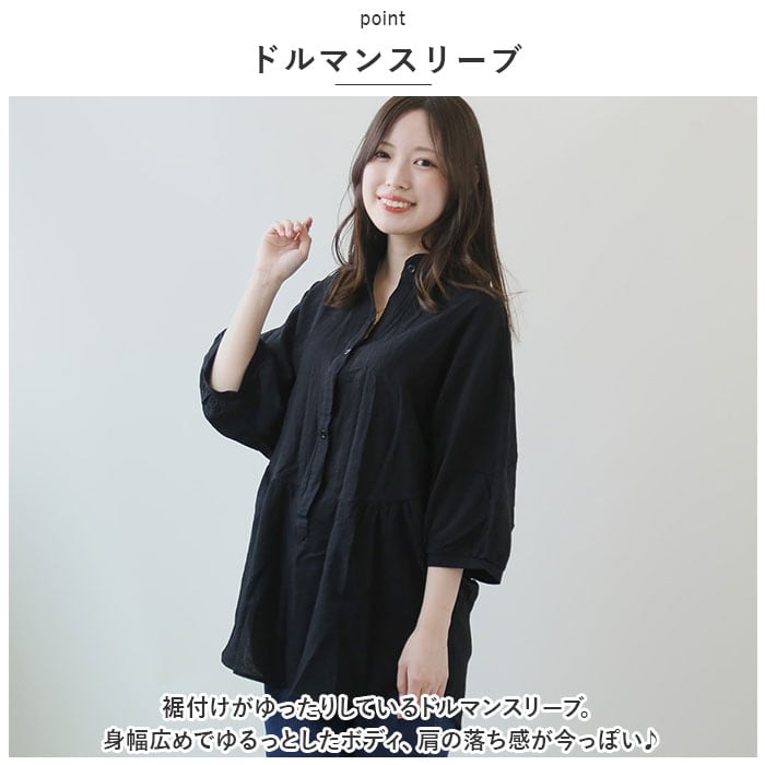 チュニック ブラウス レディース 通販 チュニックブラウス シャツ フレアシャツ 羽織 羽織り ドルマン袖 ドルマンスリーブ 7分袖 ロング 通気性 綿麻 吸湿 速乾 前開き uネック 無地 涼しい ゆったり トップス