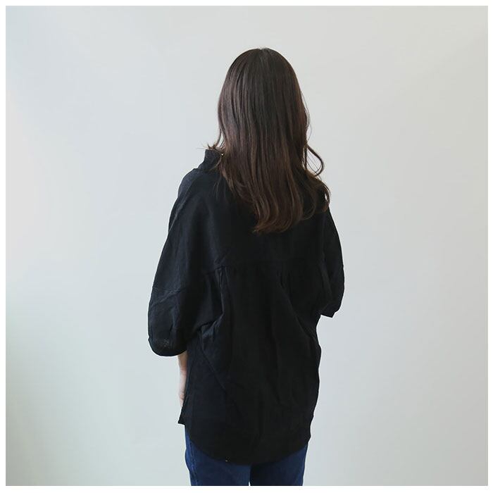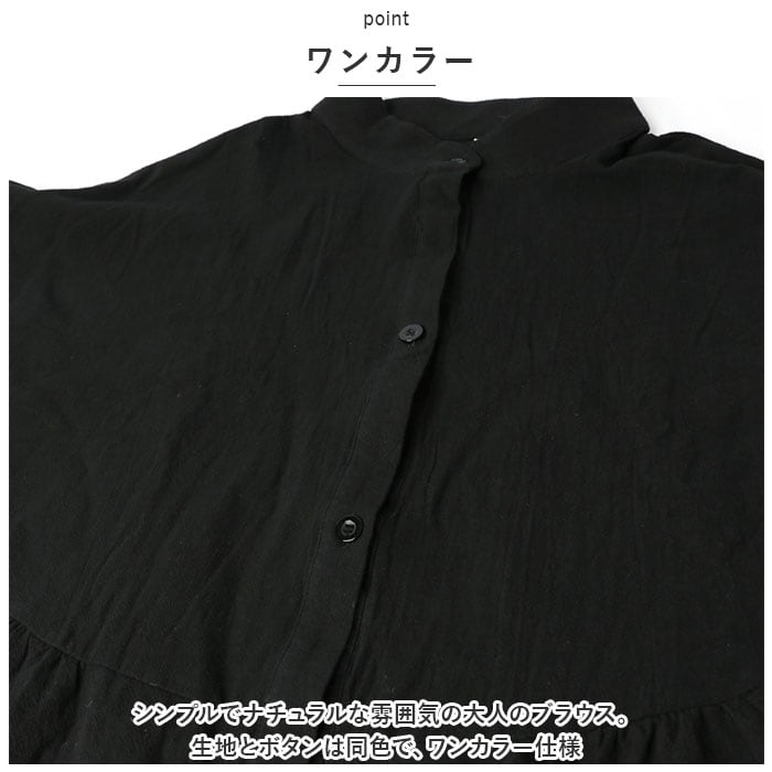 ・シンプルでナチュラルな雰囲気の大人のブラウス。生地とボタンは同色で、ワンカラー仕様。