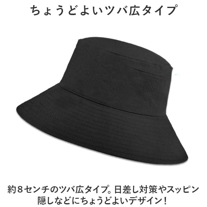 ・約8センチのツバ広タイプ。日差し対策やスッピン隠しなどにちょうどよいデザイン!