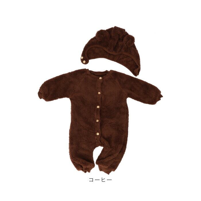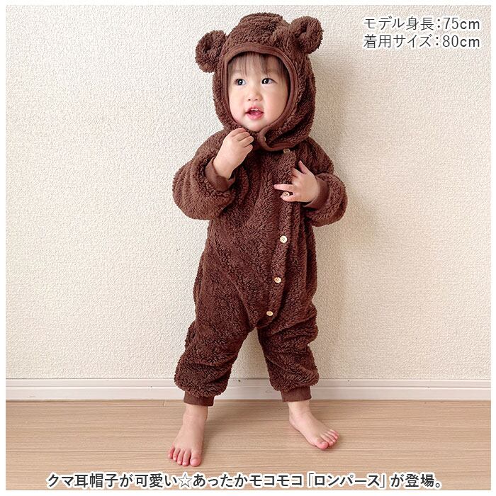 ・クマ耳帽子が可愛い☆あったかモコモコ「ロンパース」が登場。