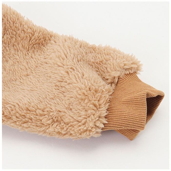 ・モコモコあったかい素材を使用しているので、アウターとして使用するのもGOOD。帽子のボタンを留めれば、首元まであったか♪全身を優しく包み、可愛く防寒対策!