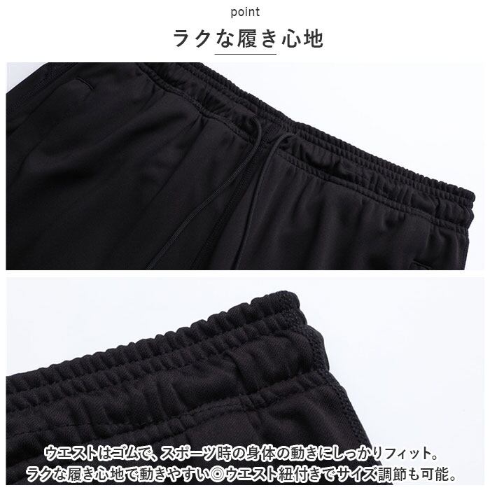 ・ウエストはゴムで、スポーツ時の身体の動きにしっかりフィット。ラクな履き心地で動きやすい◎ウエスト紐付きでサイズ調節も可能。