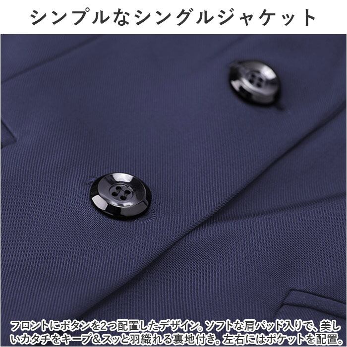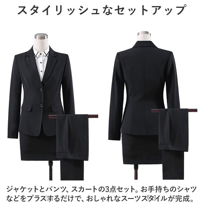 ・ジャケットとパンツ、スカートの3点セット。お手持ちのシャツなどをプラスするだけで、おしゃれなスーツスタイルが完成。