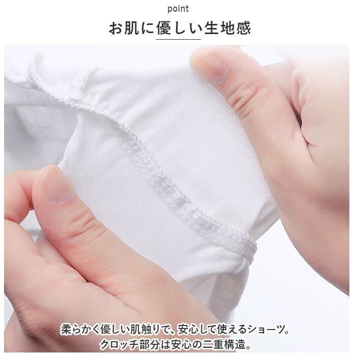 ・柔らかく優しい肌触りで、安心して使えるショーツ。クロッチ部分は安心の二重構造。