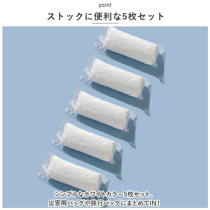 ・シンプルなホワイトカラー5枚セット。災害用バッグや旅行バッグにまとめてIN!