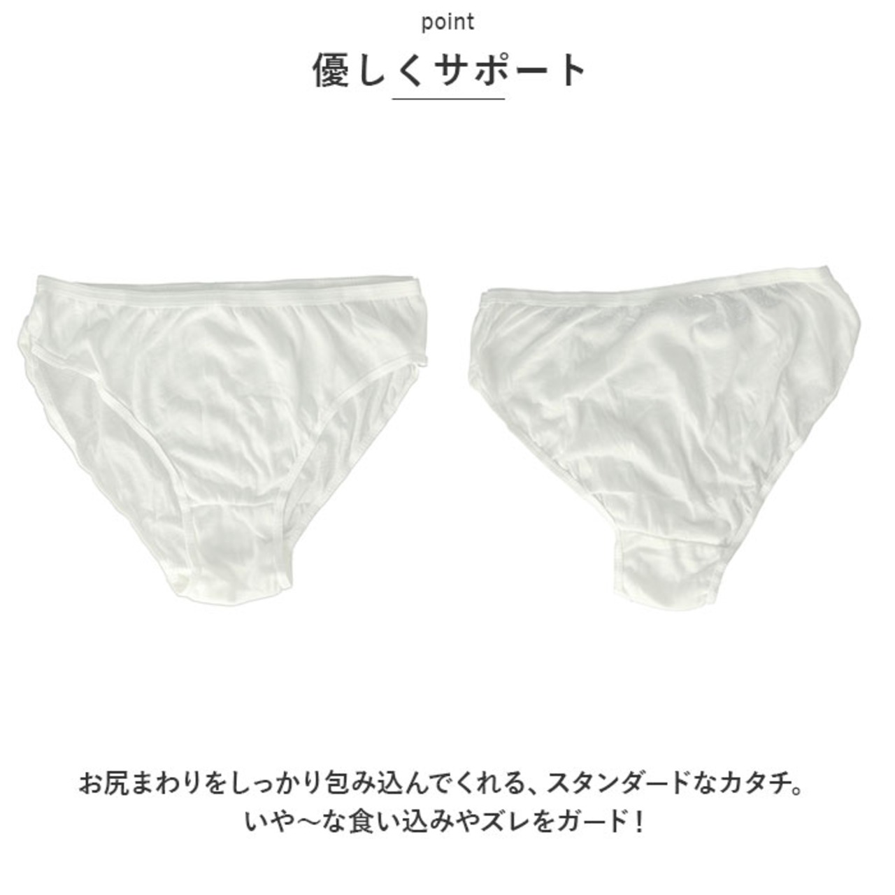 ・お尻まわりをしっかり包み込んでくれる、スタンダードなカタチ。いや~な食い込みやズレをガード!