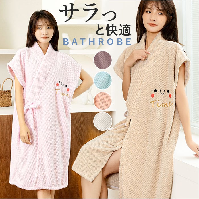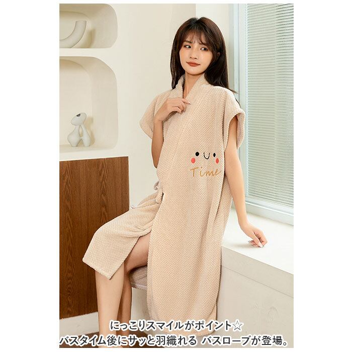・にっこりスマイルがポイント☆バスタイム後にサッと羽織れる バスローブが登場。
