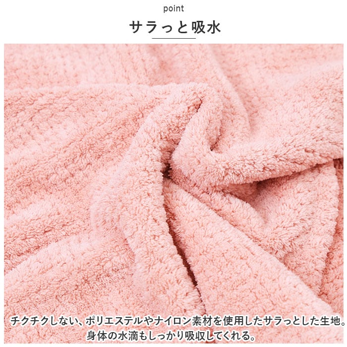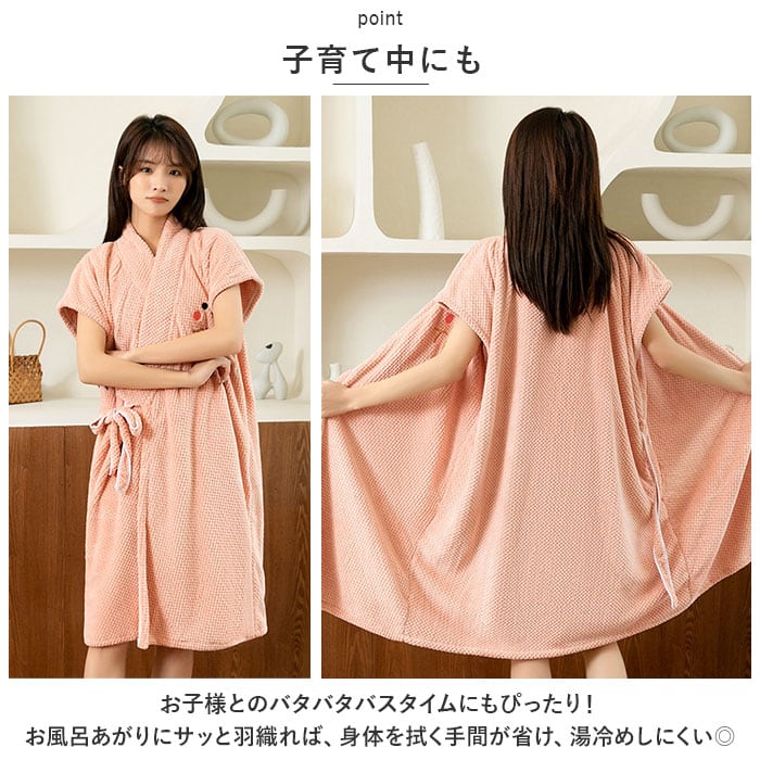 ・お子様とのバタバタバスタイムにもぴったり!お風呂あがりにサッと羽織れば、身体を拭く手間が省け、湯冷めしにくい◎