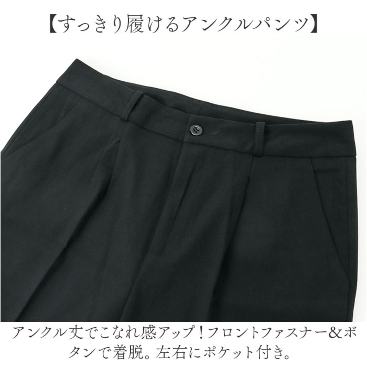 ・アンクル丈でこなれ感アップ!フロントファスナー&ボタンで着脱でき、トップスをインした時もウエストまわりがすっきり。左右にポケット付き。