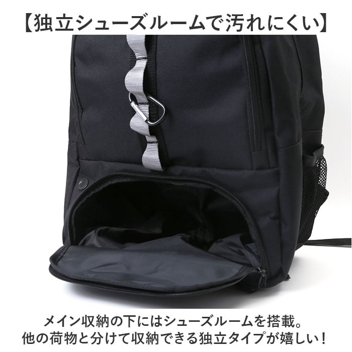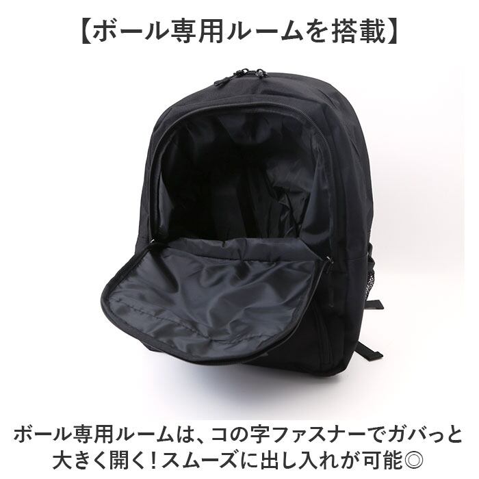 ・ボール、シューズ、ウエア、ドリンクをまるっとひとまとめに収納できる、高機能リュック。
