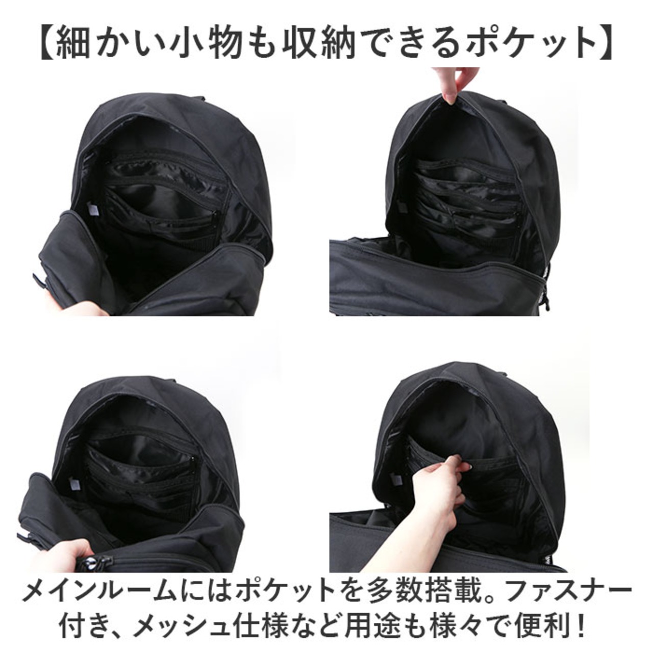 ・メインルームにはポケットを多数搭載。ファスナー付き、メッシュ仕様など用途も様々で便利!