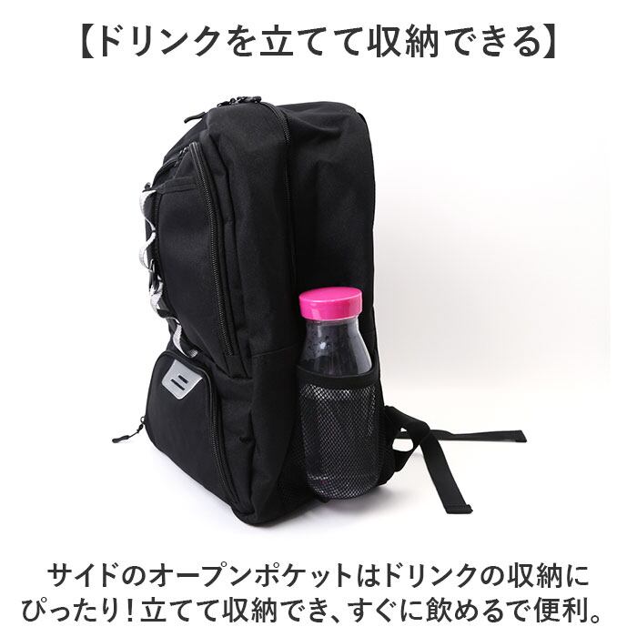 ・サイドのオープンポケットはドリンクの収納にぴったり!立てて収納でき、すぐに飲めるで便利。