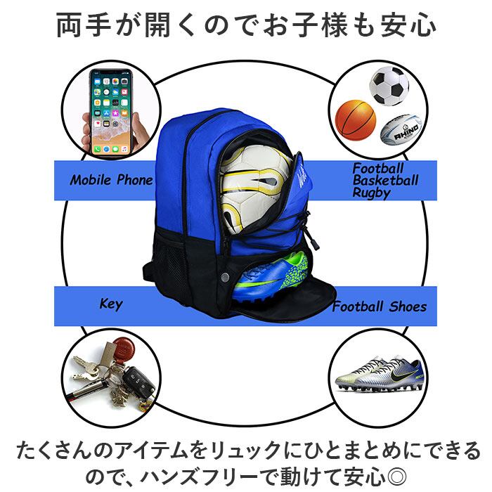 ・サッカー、バスケグッズを全部収納!サッカーリュックが登場。