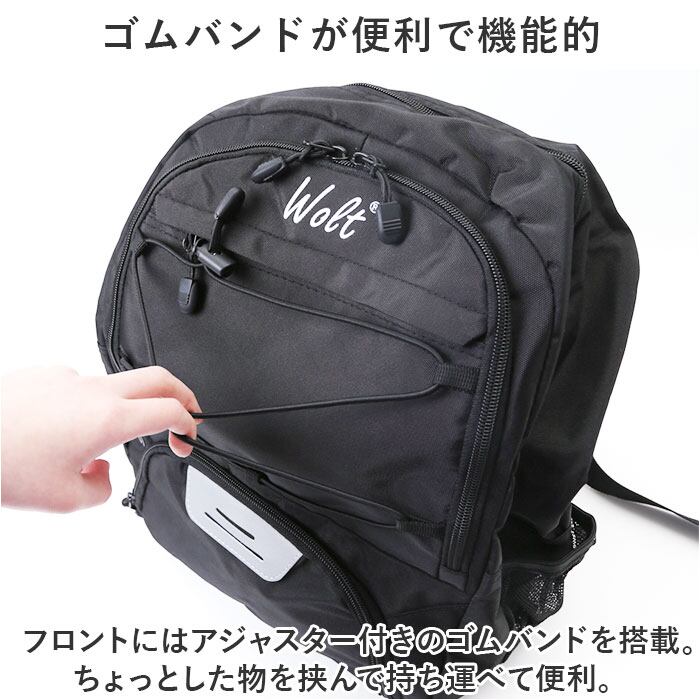 ・フロントにはアジャスター付きのゴムバンドを搭載。ちょっとした物を挟んで持ち運べて便利。