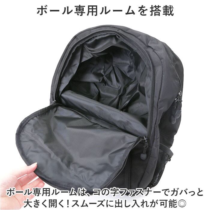 ・ボール、シューズ、ウエア、ドリンクをまるっとひとまとめに収納できる、高機能リュック。