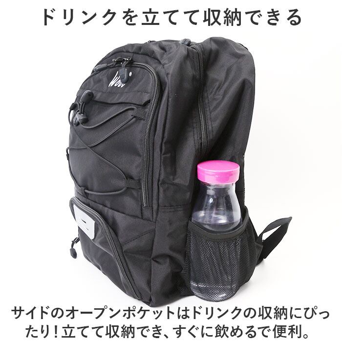・サイドのオープンポケットはドリンクの収納にぴったり!立てて収納でき、すぐに飲めるで便利。