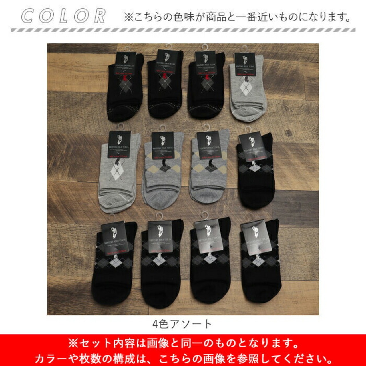 ・4色アソートのたっぷり12足セット。気分に合わせてカラーをチョイスでき、洗い替えにも便利。