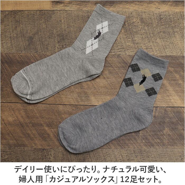 ・デイリー使いにぴったり。ナチュラル可愛い、婦人用「カジュアルソックス」12足セット。