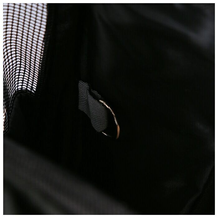 ・バッグの内側にはリード金具を繋ぐことのできるDカン付きなので、ペットの急な飛び出しを防いでくれる!