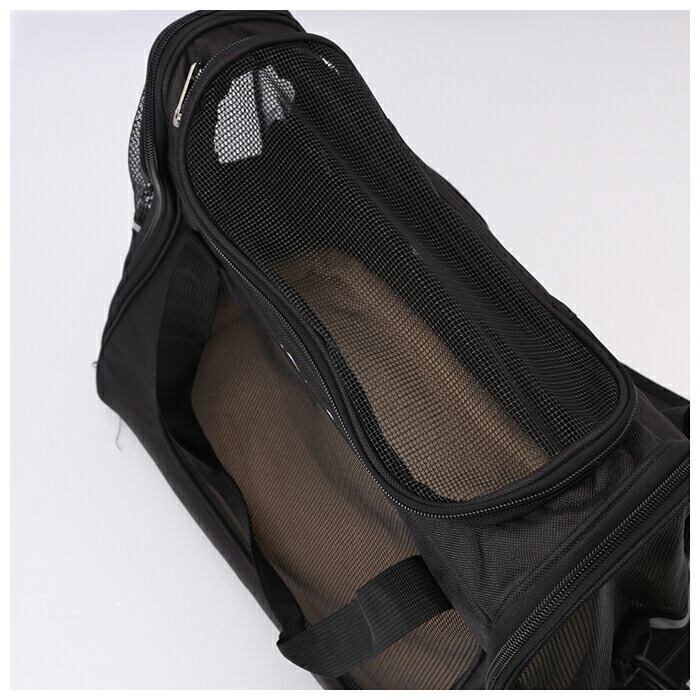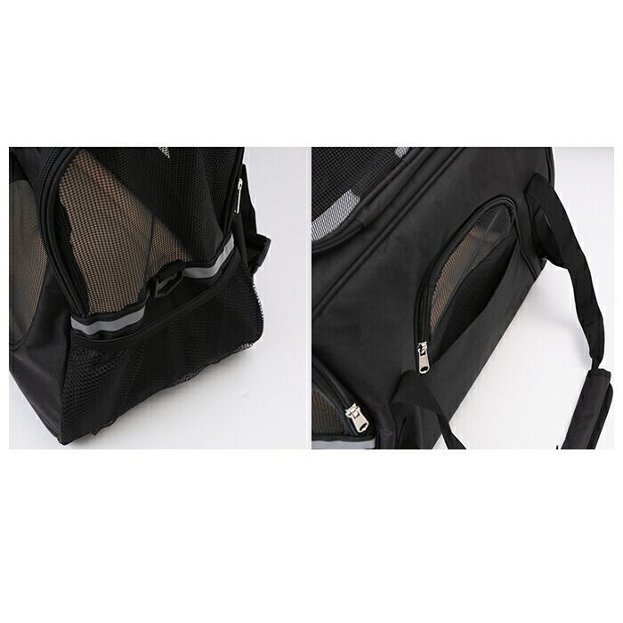 ・バッグの全面に通気性のよい頑丈なメッシュ窓を設けた快適仕様♪暑さが気になる季節でも安心で、バッグの中のペット様子がつぶさに見てとれるのも飼い主さんにとって嬉しいポイント!