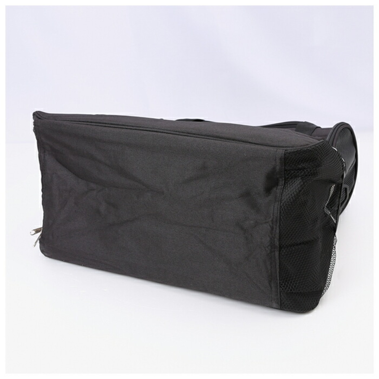 ・バッグの上部と両側面に、ペットが出入りするための3つのファスナー開口部を配置。向かって左側面の窓はダブルファスナーで大きく開き、ワンちゃん・ネコちゃんの出入りがスムーズ。
