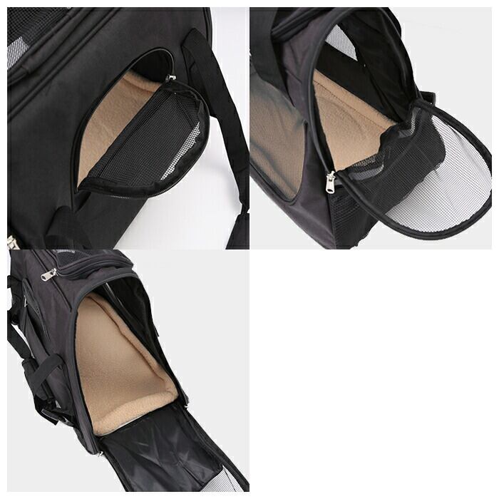 ・背面の小さなファスナー小窓は、外出中に不安になったペットの頭を撫でてあげる時に便利。