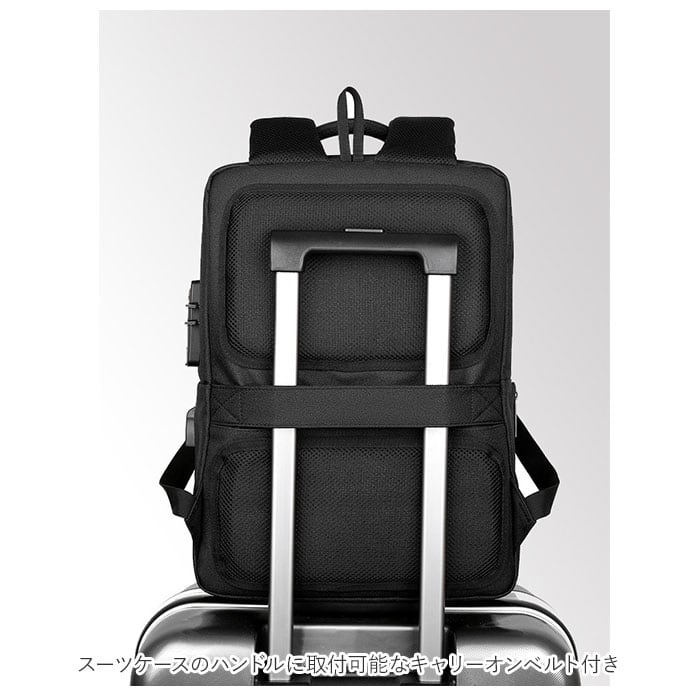 ・ショルダーベルトとリュック背面は、クッションパッド+メッシュ生地で仕上げ、長時間の出張や暑さが気になる季節でも快適。