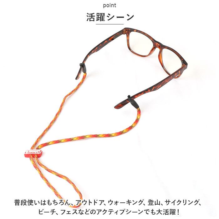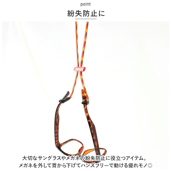 ・大切なサングラスやメガネの紛失防止に役立つアイテム。メガネを外して首から下げてハンズフリーで動ける優れモノ◎