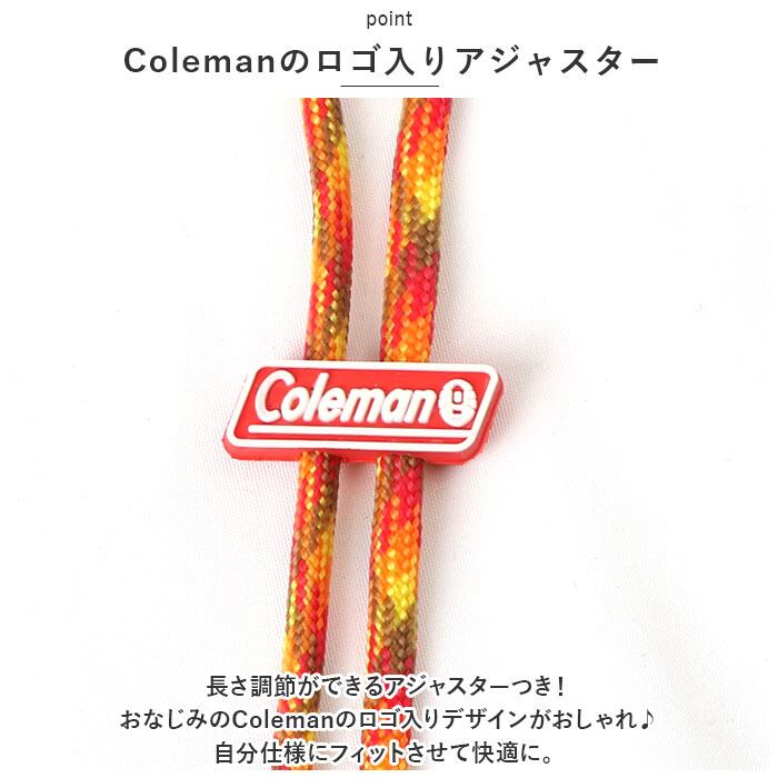 ・長さ調節ができるアジャスターつき!おなじみのColemanのロゴ入りデザインがおしゃれ♪自分仕様にフィットさせて快適に。