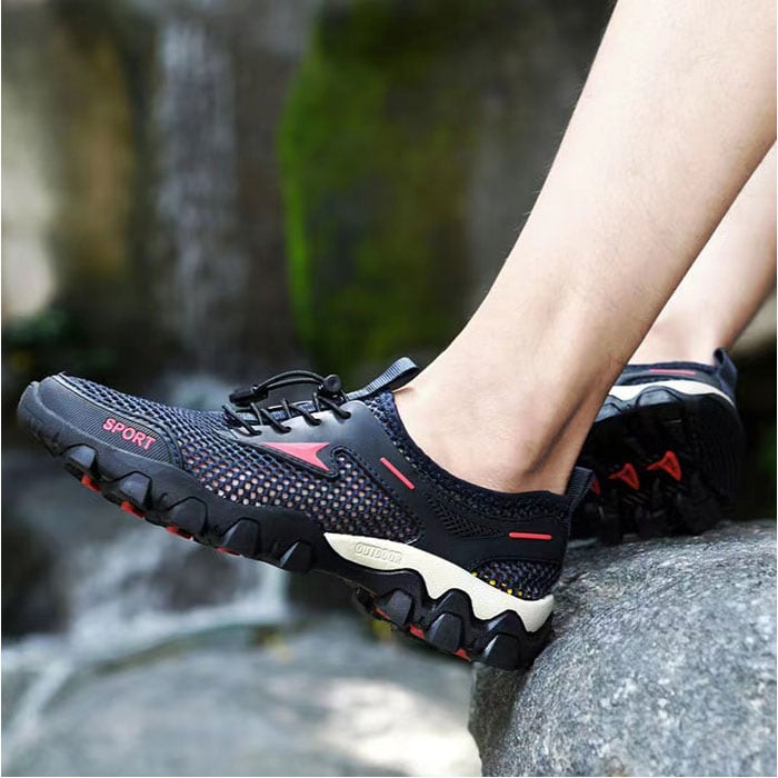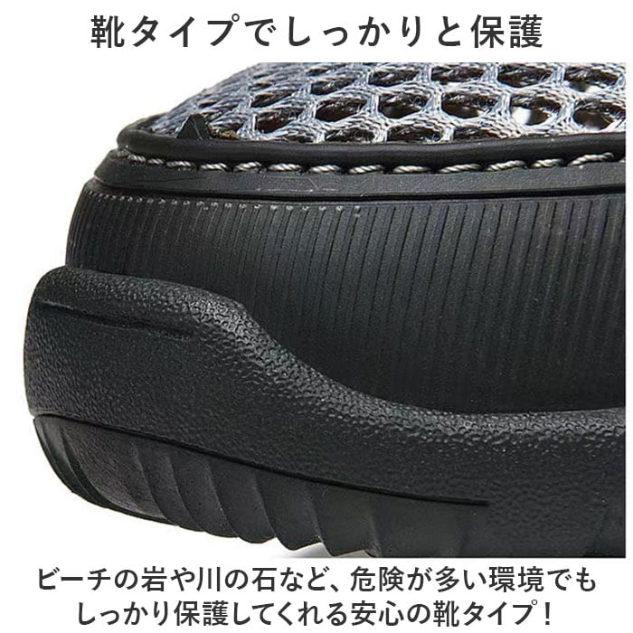 ・ビーチの岩や川の石など、危険が多い環境でもしっかり保護してくれる安心の靴タイプ!