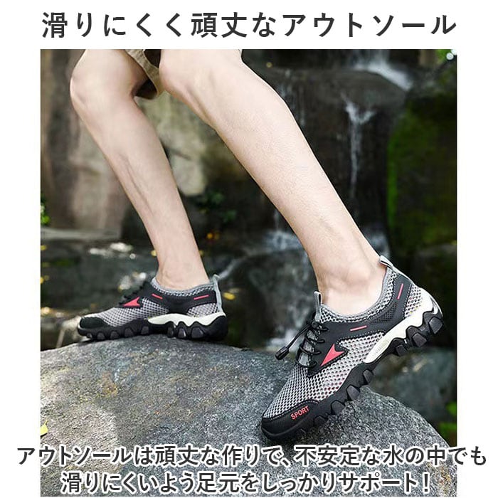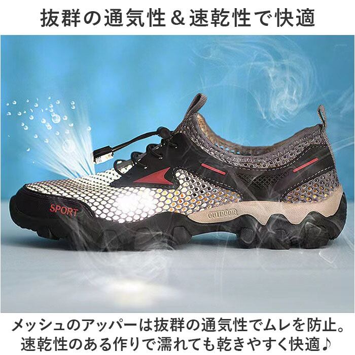 ・メッシュのアッパーは抜群の通気性でムレを防止。速乾性のある作りで濡れても乾きやすく快適♪