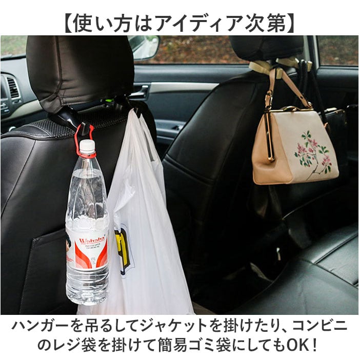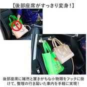 ・後部座席に雑然と置きがちな小物類をフックに掛けて、整理の行き届いた車内を手軽に実現!