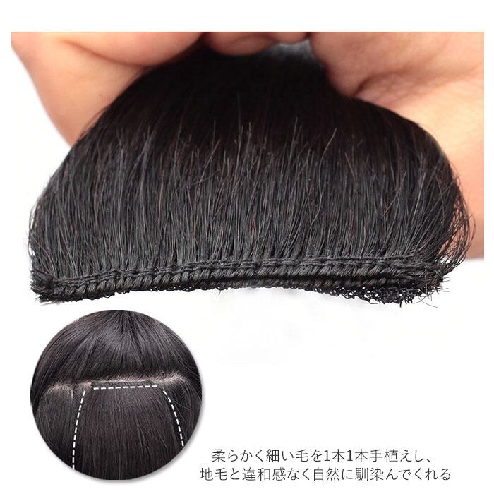 ・人毛100%使用。根本部分を手植えすることで地毛に馴染みやすく、違和感なく自然に馴染んでくれる。