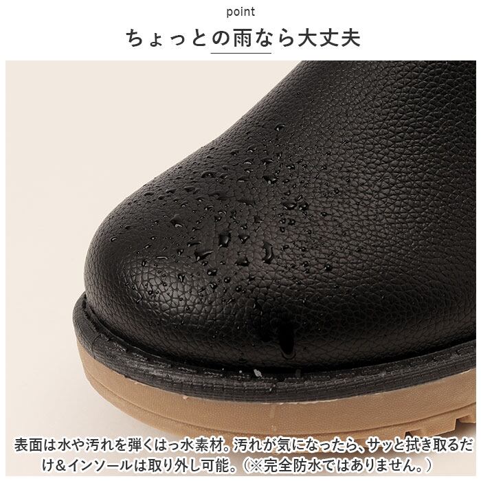 ・表面は水や汚れを弾くはっ水素材。汚れが気になったら、サッと拭き取るだけ&インソールは取り外し可能。(※完全防水ではありません。)