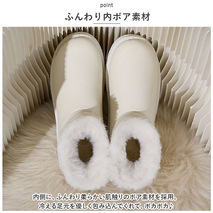 ・内側に、ふんわり柔らかい肌触りのボア素材を採用。冷える足元を優しく包み込んでくれて、ポカポカ♪