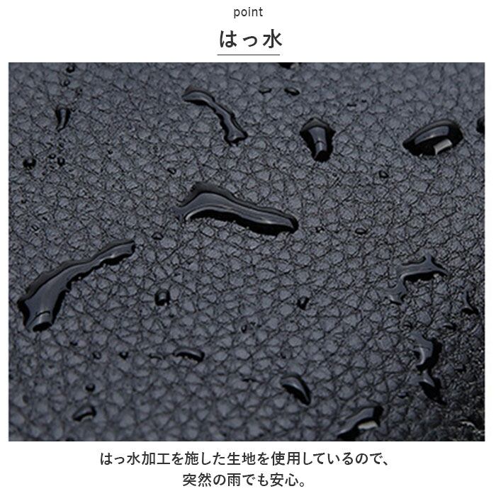 ・はっ水加工を施した生地を使用しているので、突然の雨でも安心。