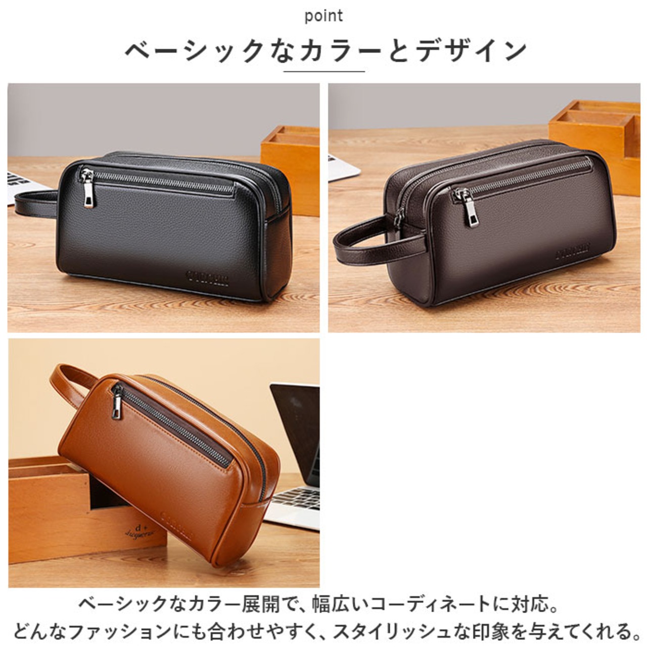 ・ベーシックなカラー展開で、幅広いコーディネートに対応。どんなファッションにも合わせやすく、スタイリッシュな印象を与えてくれる。