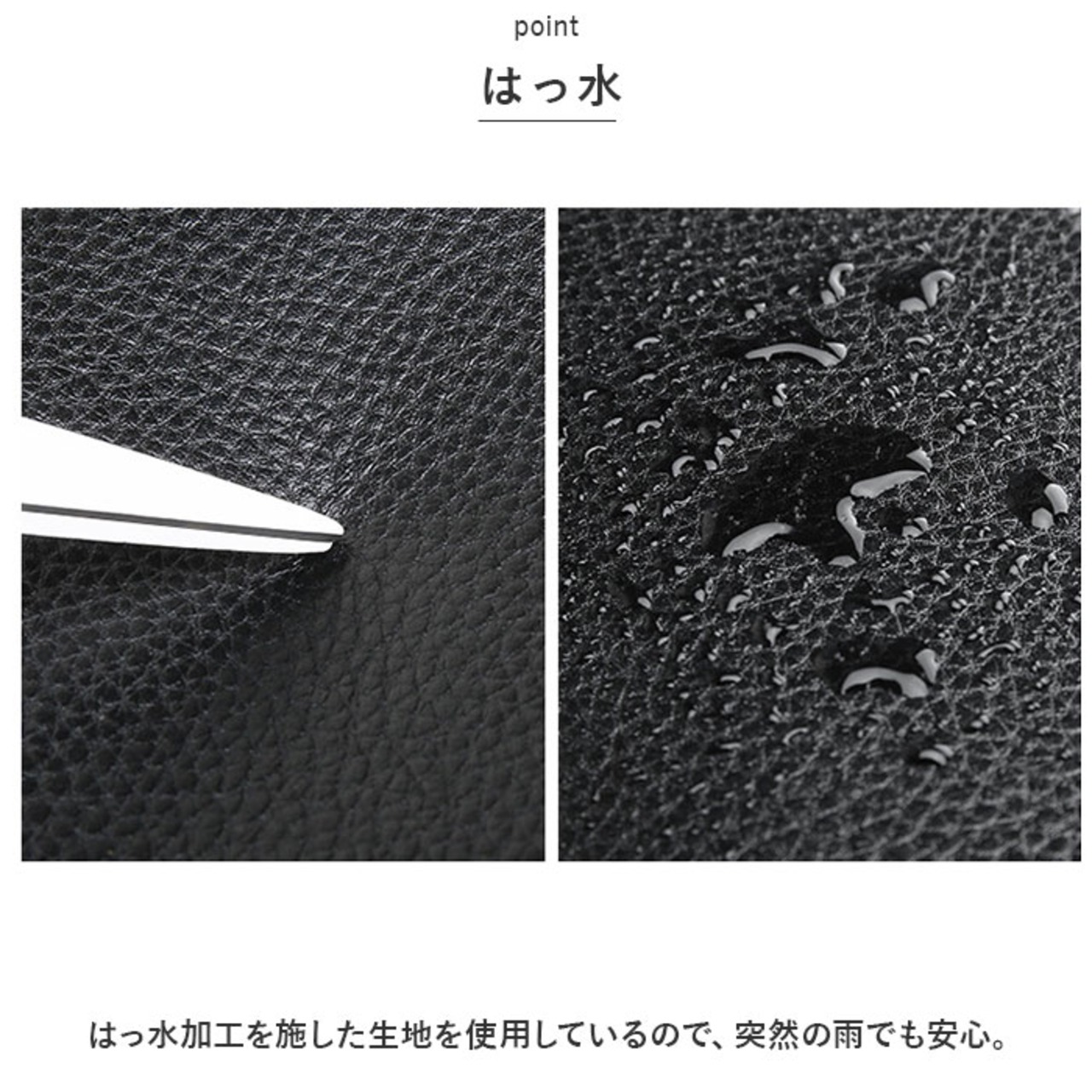 ・はっ水加工を施した生地を使用しているので、突然の雨でも安心。