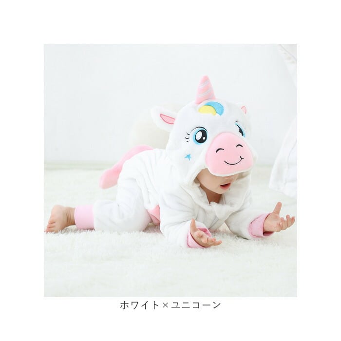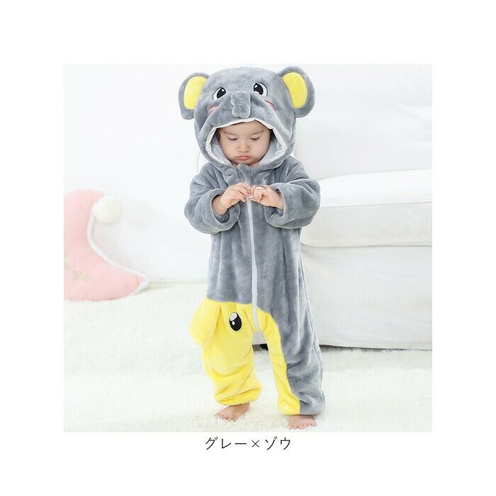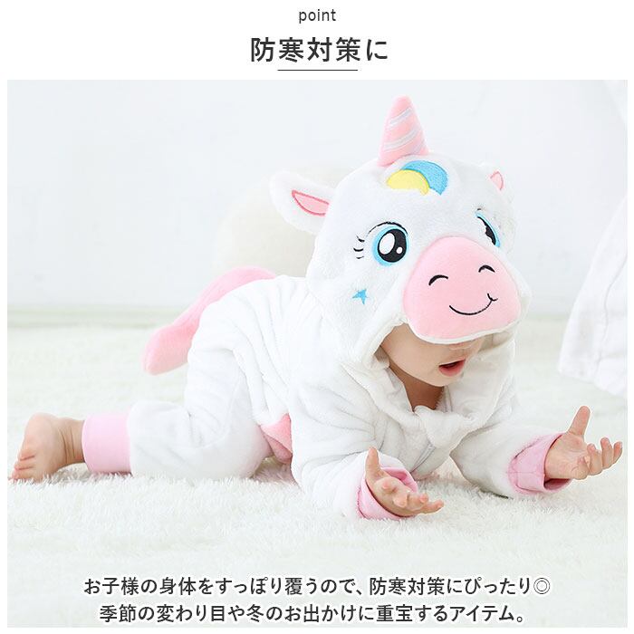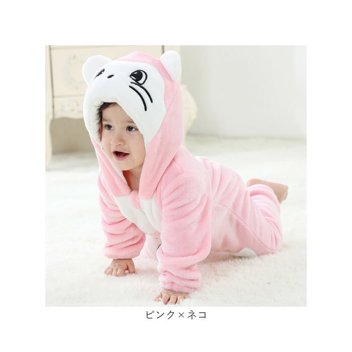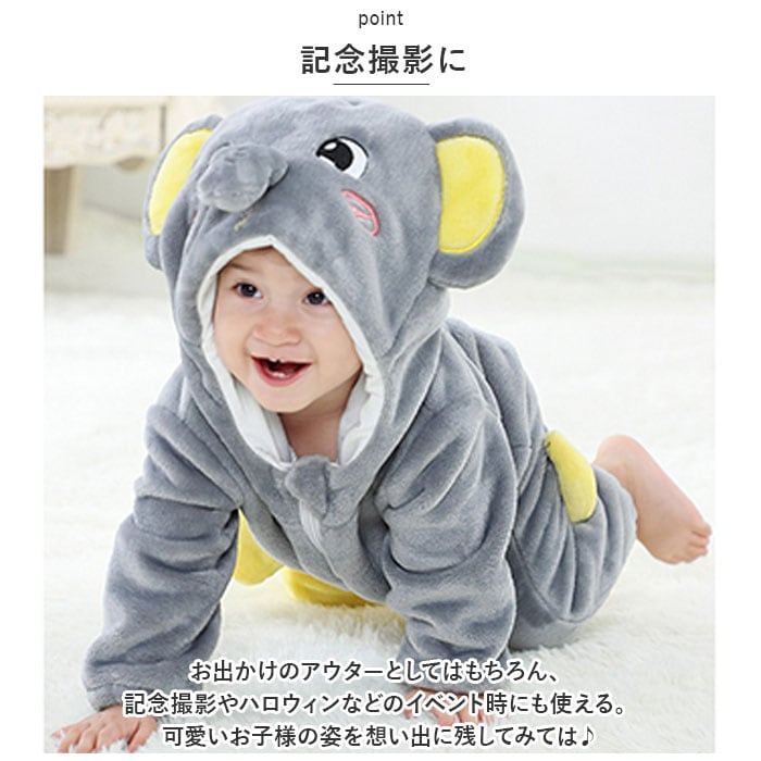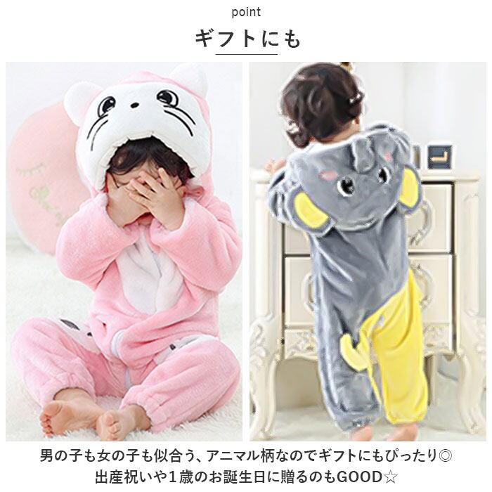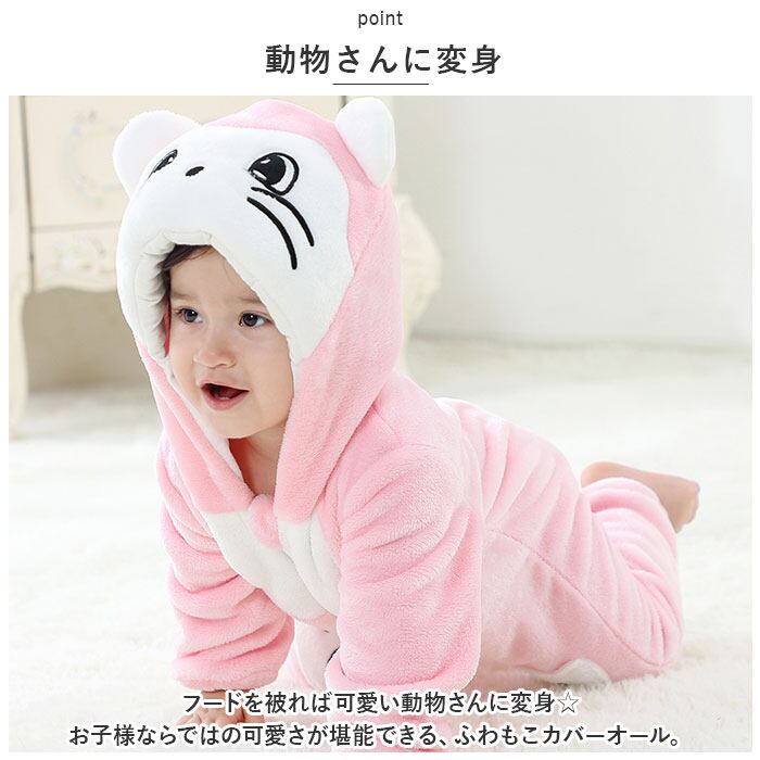 ・フードを被れば可愛い動物さんに変身☆お子様ならではの可愛さが堪能できる、ふわもこカバーオール。