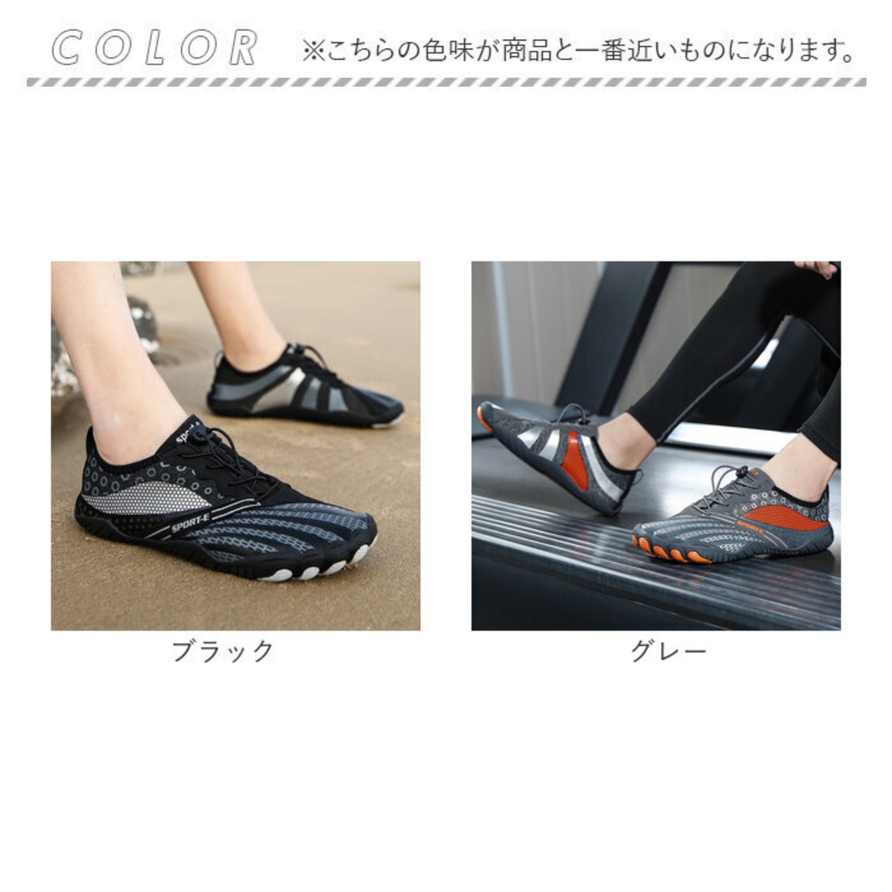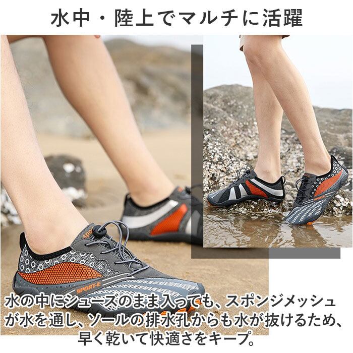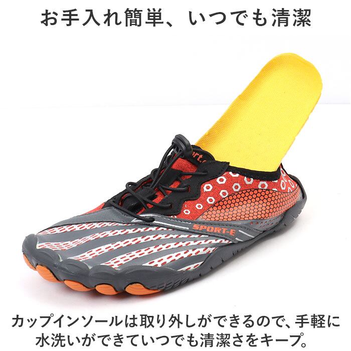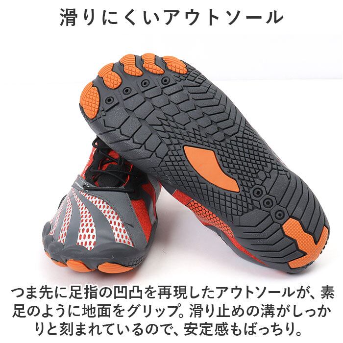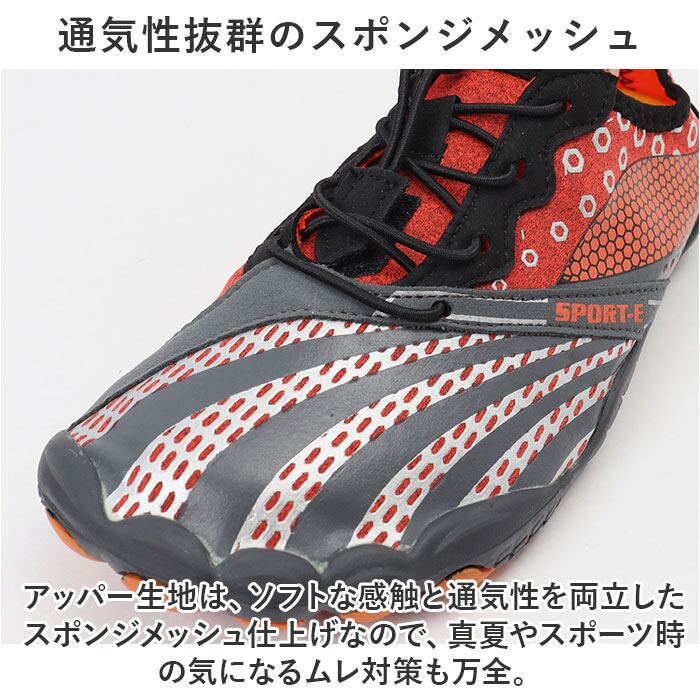 ・ジムでのトレーニングやランニングなどのフィットネスにはもちろん、サーフィンのような水辺のアクティビティーではマリンシューズとして大活躍。