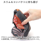 ・つま先に足指の凹凸を再現したアウトソールが、素足のように地面をグリップ。滑り止めの溝がしっかりと刻まれているので、安定感もばっちり。