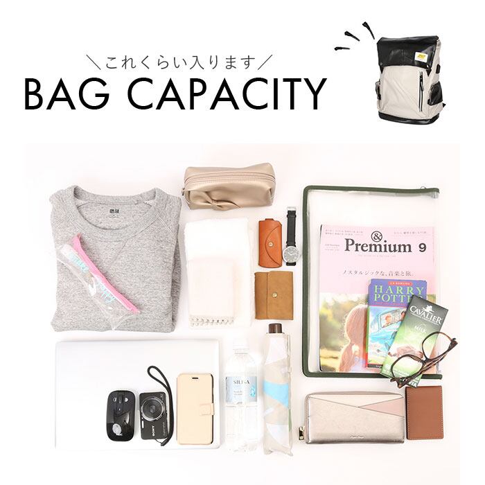 ・ボックス型フォルムが印象的なメインルームはB4サイズに対応。充分なマチ幅と深さで、1泊~2泊程度の旅行やスポーツ用の荷物をひとまとめにできる大容量設計。