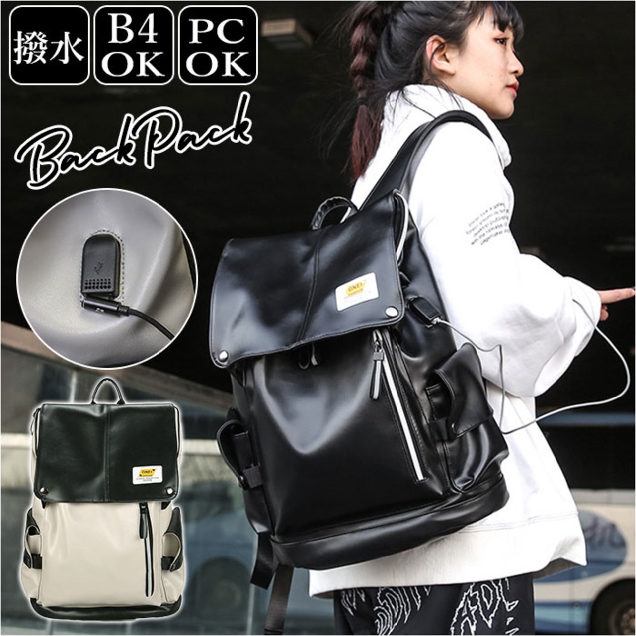 リュック メンズ おしゃれ 通販 リュックサック バックパック デイパック 通勤 通学 旅行 大容量 A4 PC パソコン USBポート フェイクレザー 合皮 シンプル ビジネス カジュアル 大学生 大人 女子 男子 軽量 軽い 撥水 はっ水 レディース 男女兼用 ユニセックス メンズバッグ