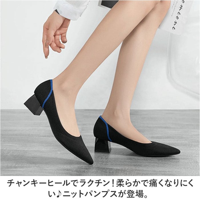 ・チャンキーヒールでラクチン!柔らかで痛くなりにくい♪ニットパンプスが登場。