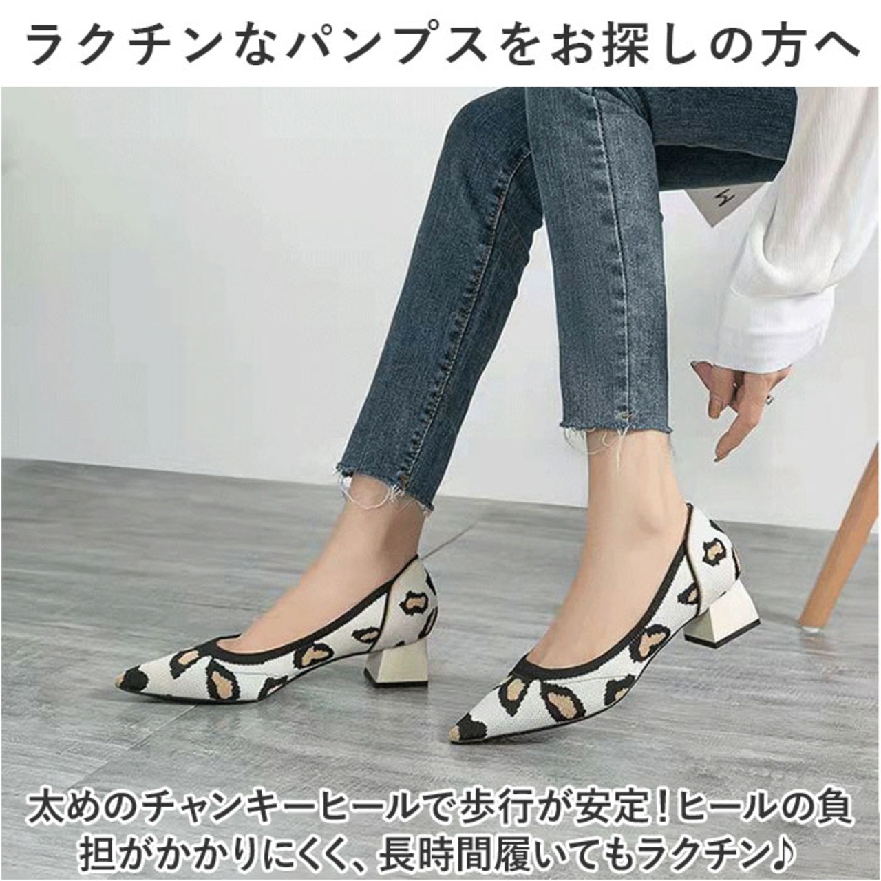 ・ニット生地が柔らかく、足に優しくフィットして痛くなりにくい。パンプスが苦手な方にも◎