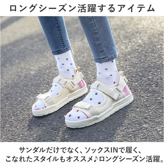 ・サンダルはシンプルなので、ペディキュアとの相性が抜群!カラーソックスともマッチ。