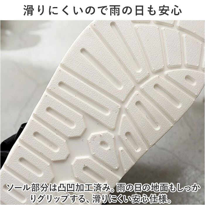 ・ソール部分は凸凹加工済み。雨の日の地面もしっかりグリップする、滑りにくい安心仕様。